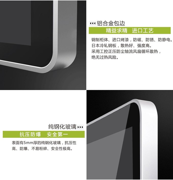 產(chǎn)品簡介:完美的視覺表現(xiàn)!實現(xiàn)廣告在消費人群的精準(zhǔn)投放,品牌展示和推廣的有效窗口,適合擺放在品牌專賣店、連鎖加盟店、高檔酒店及各種公共場所做品牌宣傳展示之用,也可以用于地鐵等場所成為公共事業(yè)推廣的窗口。